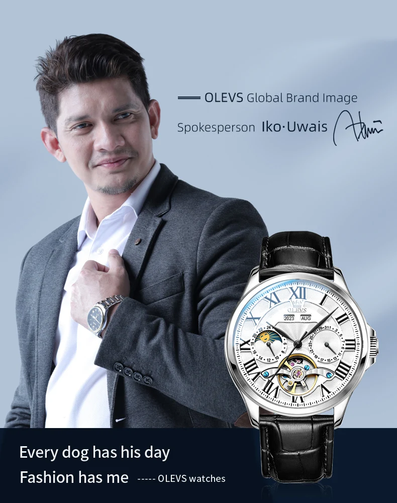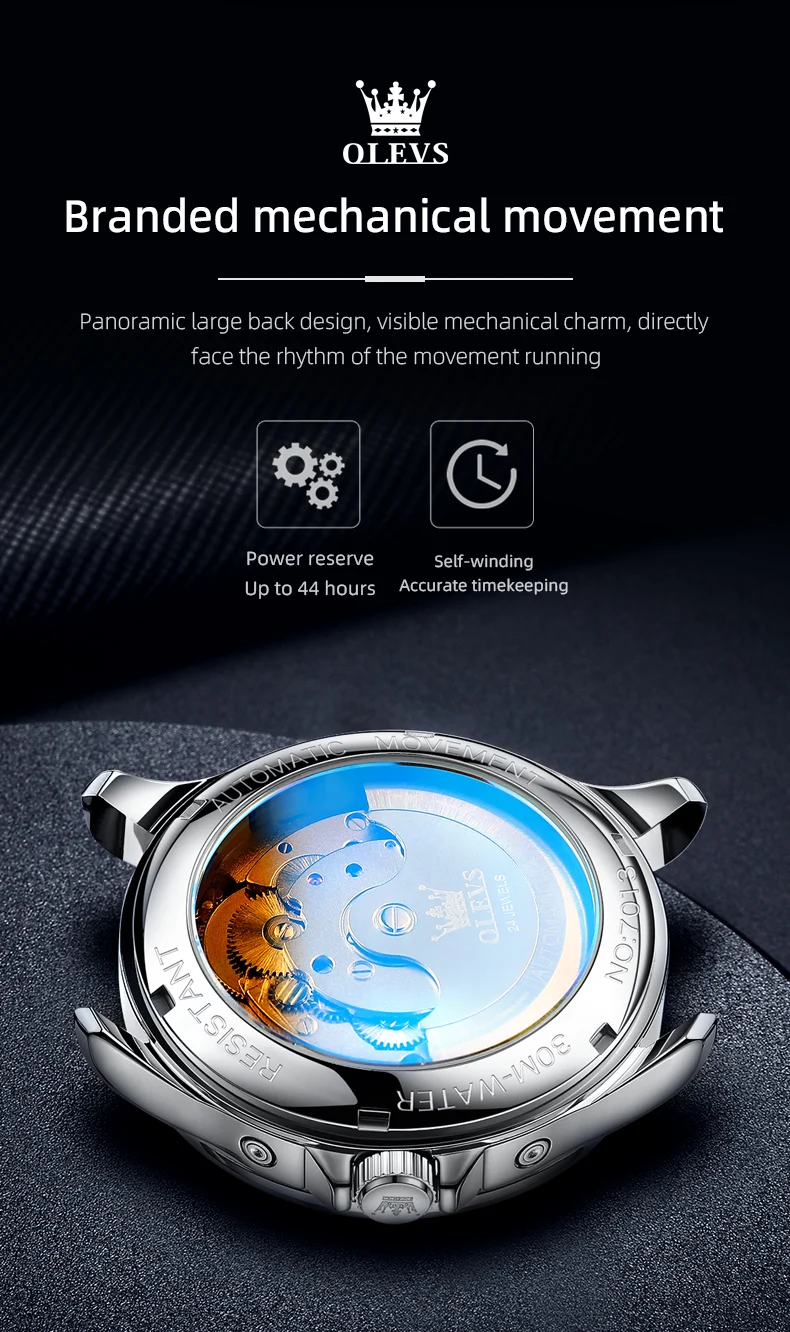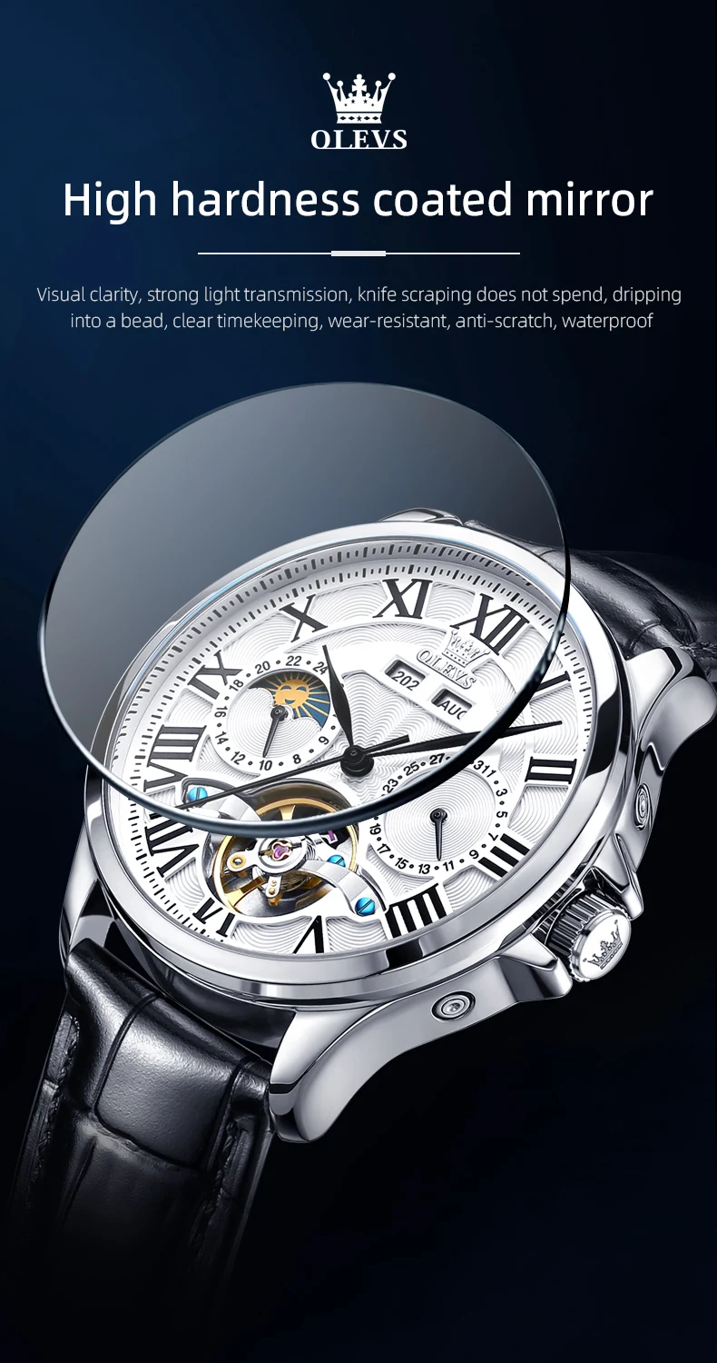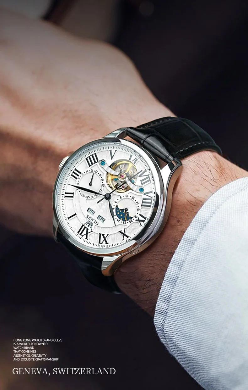 OLEVS 7013 Roman Scale Business Mechanical Watch For Men Hollow Skeleton Waterproof Man Watches Moon Phase Automatic Wristwatch