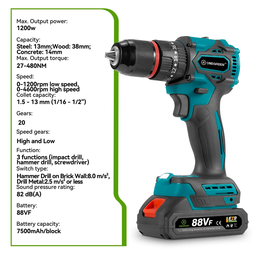 Brushless 13MM Electric Drill 480N.M Electric Screwdriver Impact Drill Power Tools