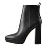 Onlymaker Women Pointed Toe Ankle Boots Black Matte Flock Chunky Heel Platform Booties Party Shoes Large Size Short Boots