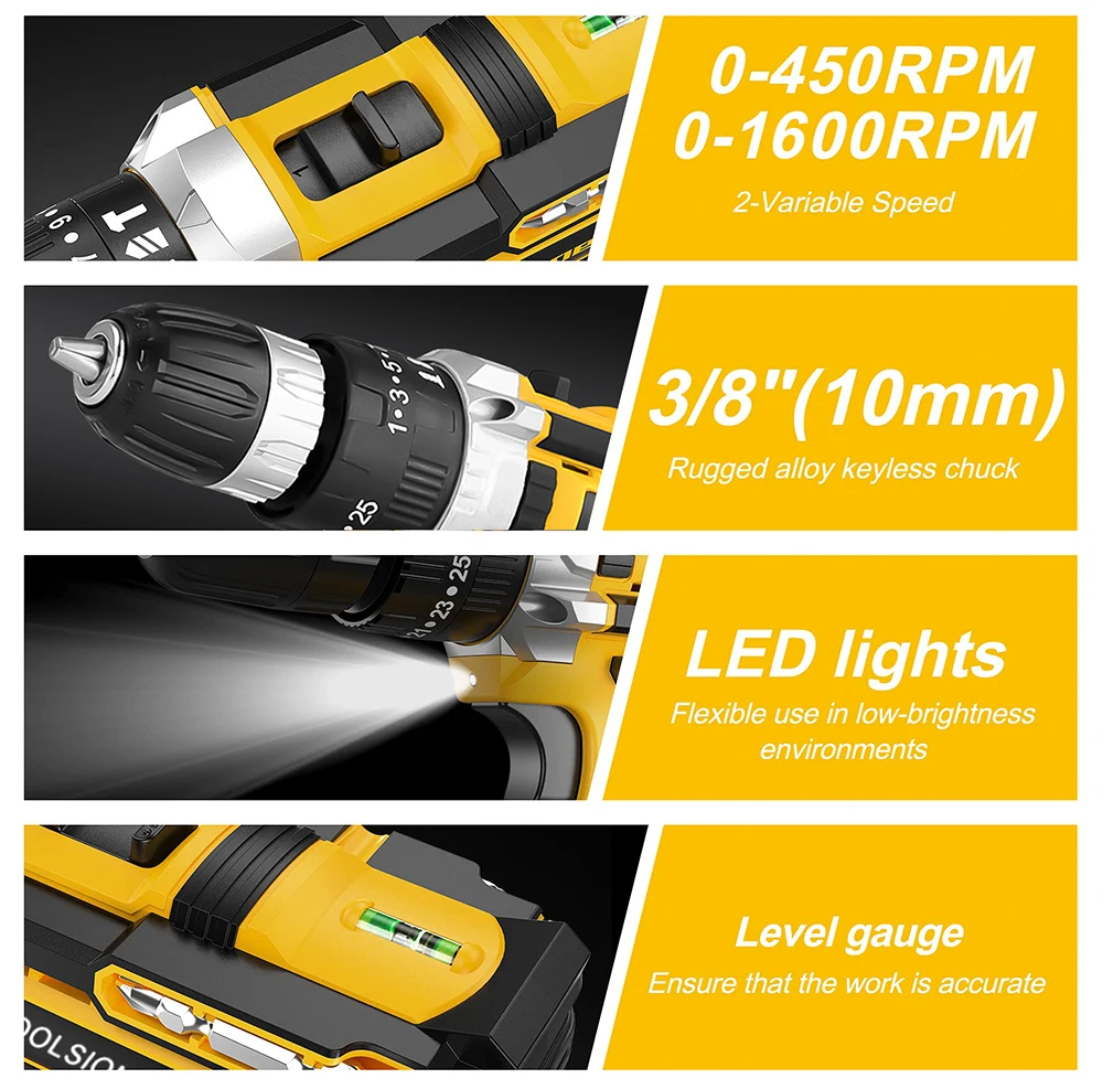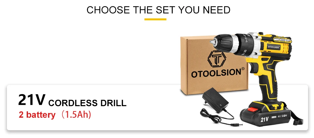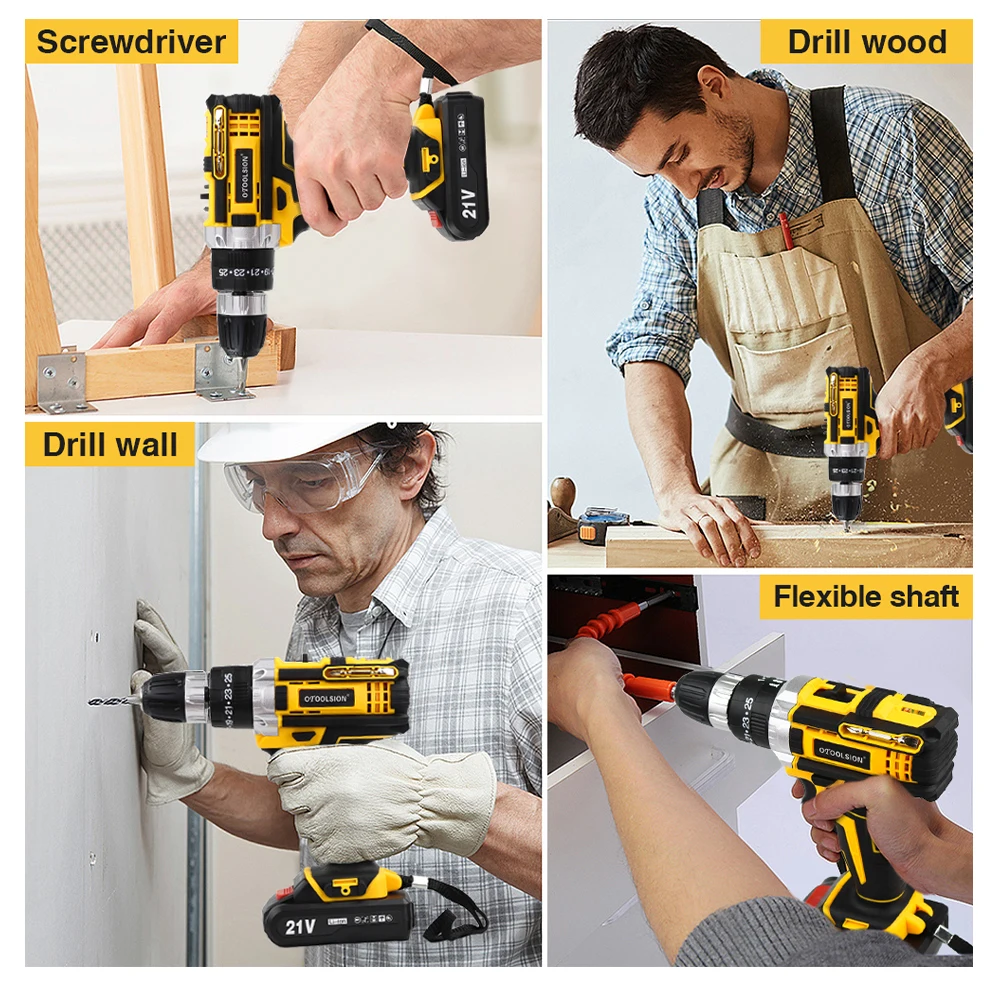 OTOOLSION 21V Cordless Electric Screwdriver Lithium Ion Battery Variable Speed Impact Drill 3/8 Inch Cordless Power Tool