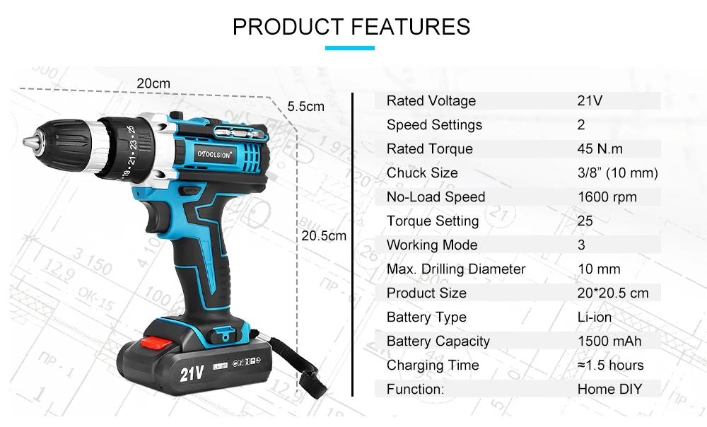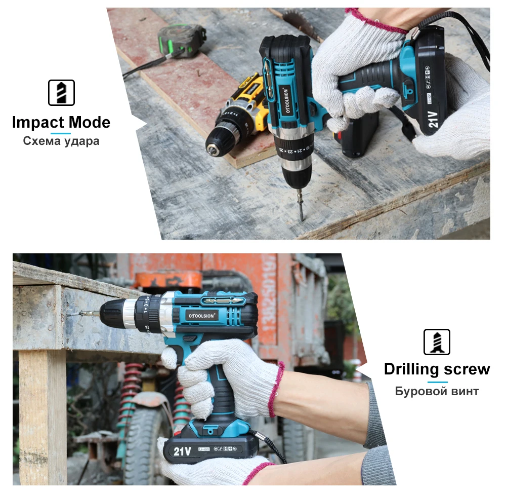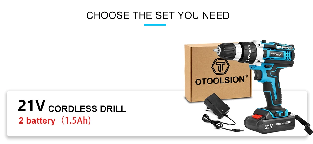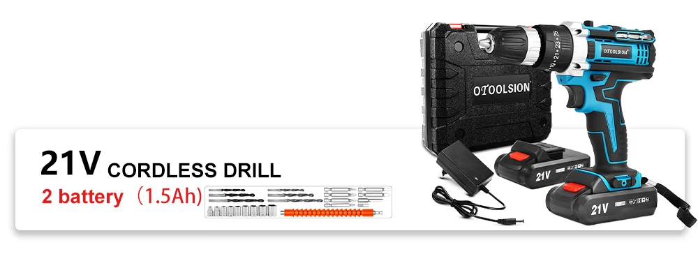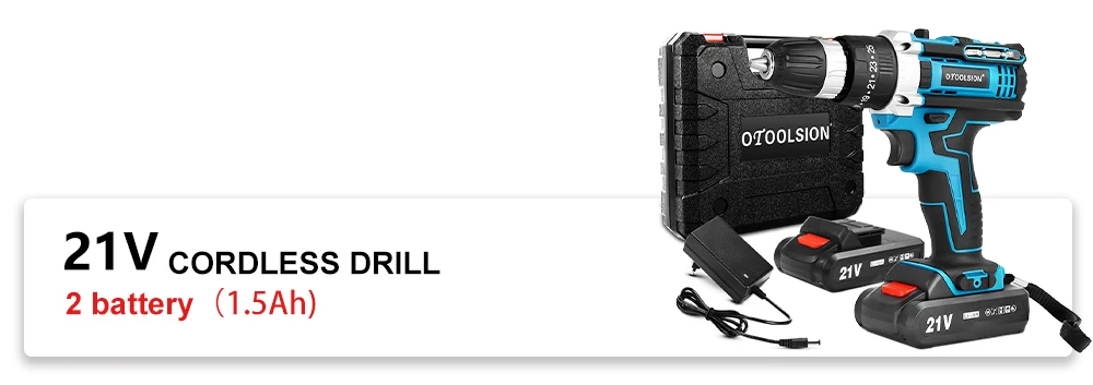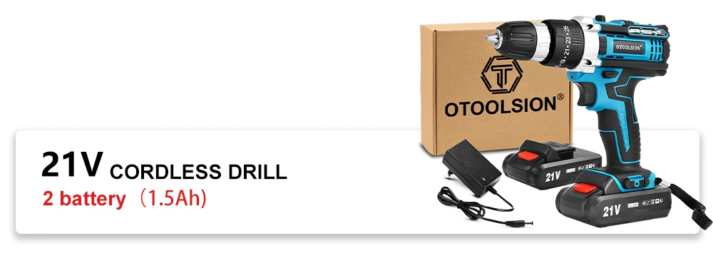 OTOOLSION 21V Electric Screwdriver Cordless Drill 2 Speed 25+3 Torque Impact Cordless Drill Lithium Ion Battery Power Tool