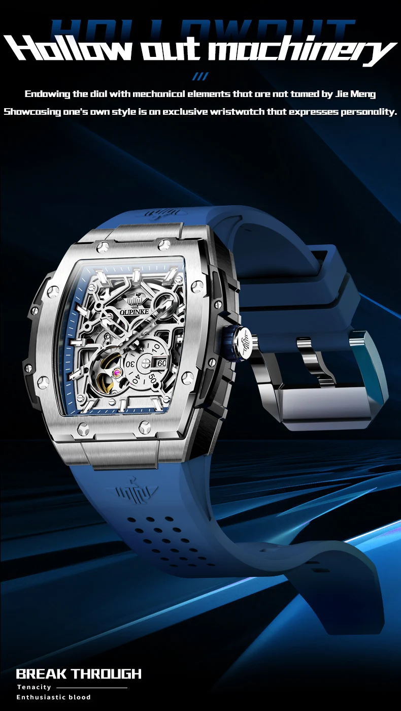OUPINKE 3213 Mens Watch Original Automatic Movement Mechanical Wristwatch Skeleton Silicon Strap Watches Luxury Men Gifts Reloj