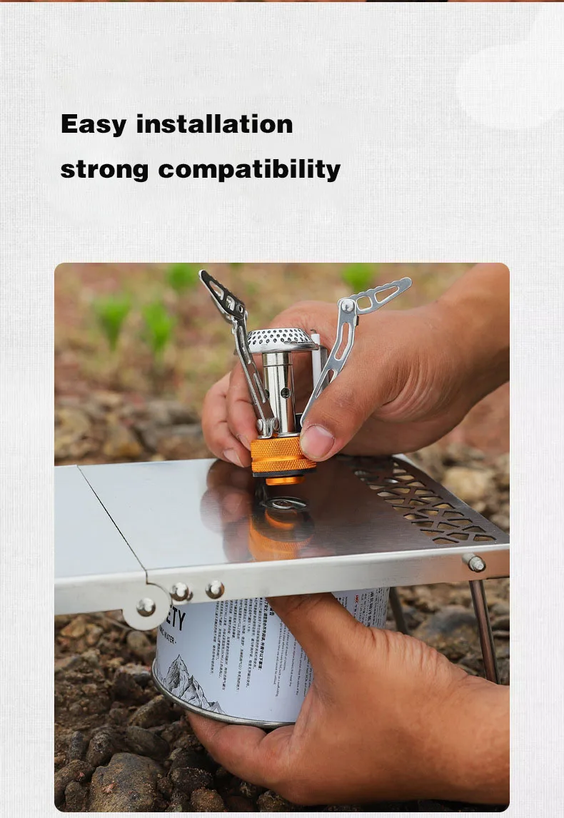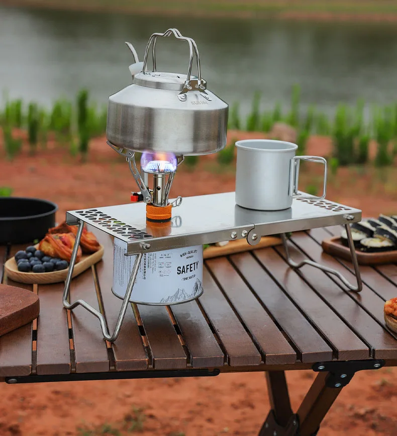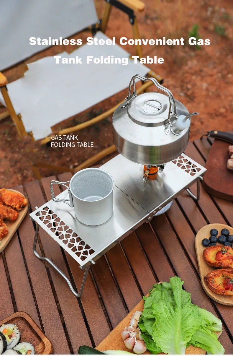 Outdoor Camping Stainless Steel Folding Gas Stove Table BBQ Portable Versatile Steel Table & Mini Burner Picnic Cooker