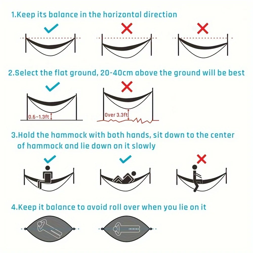 ✅All THE INSTALLATION TOOLS INCLUDED:Our portable Hammock comes with 2 easy-setup hammock straps(32 adjustment loops + 20ft long combined)+2 heavy duty carabiners+2 net ropes . NO need to buy any other tree straps or carabiners. Save your TIME and MONEY. Perfect gifts for him/her.