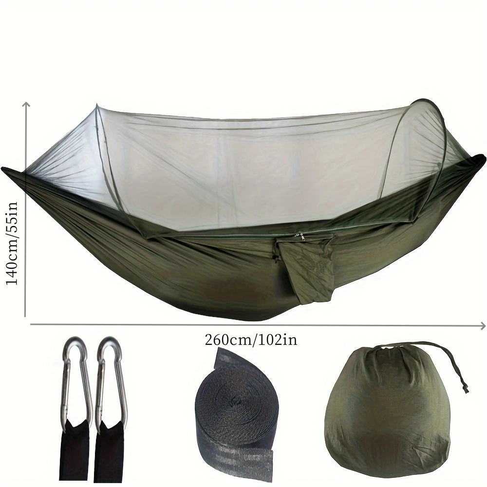 ✅Tear-Resistant & Durable: The camping hammock with mosquito net is constructed from tear-resistant, soft and comfortable 210T nylon spinning material with a maximum weight capacity of 400lbs,featuring a specially designed high-density durable mesh fabric, resulting in a lightweight and breathable product. 7075 Aviation Aluminum Alloy poles are stronger and more durable than other materials, avoiding bending or breakage.
