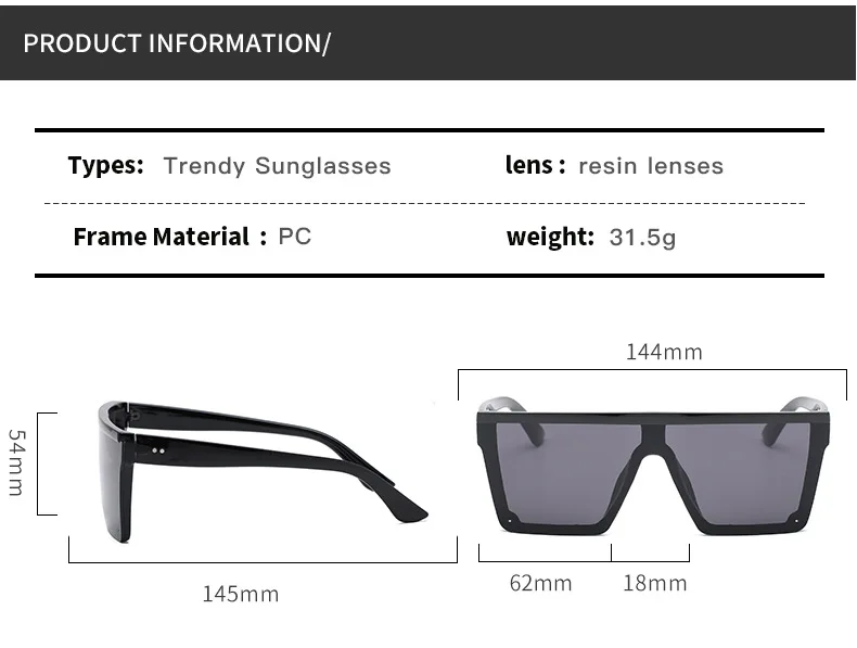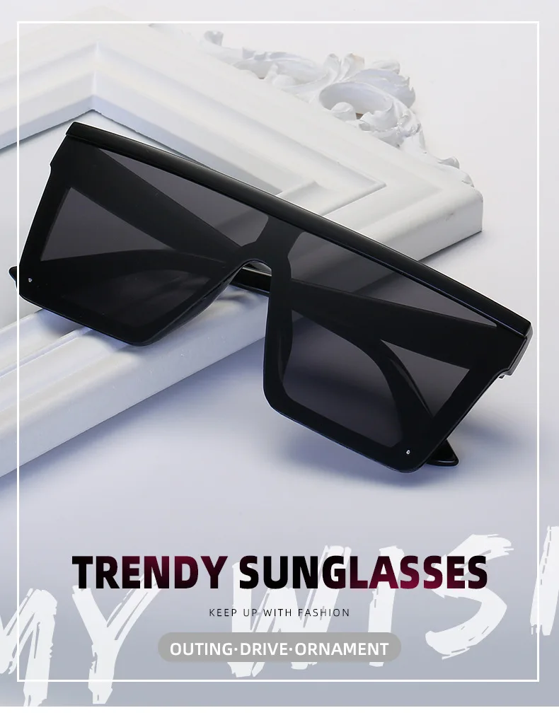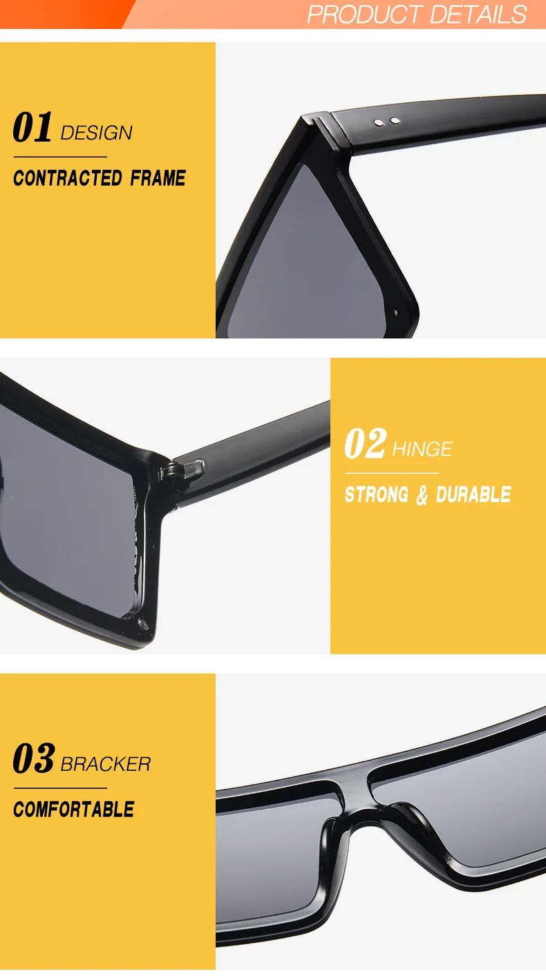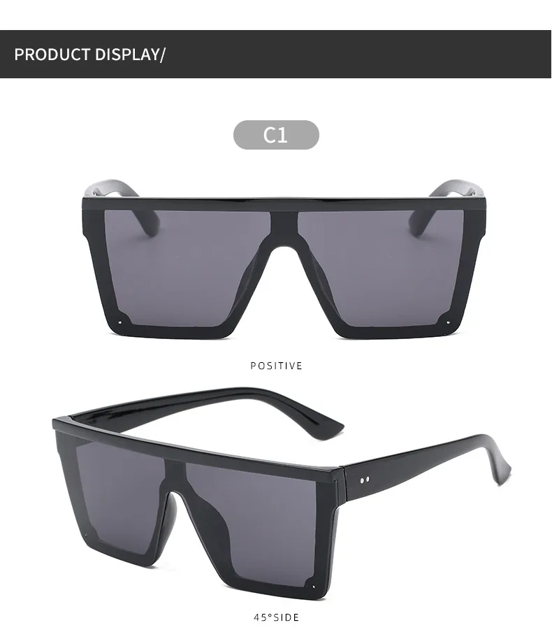 Oversized Flat Top Sunglasses Men Black Fashion Square One Piece Sun Glasses Vintage Retro Mirror Shades Women