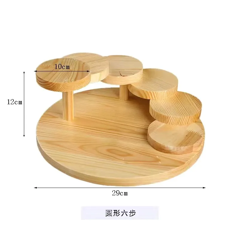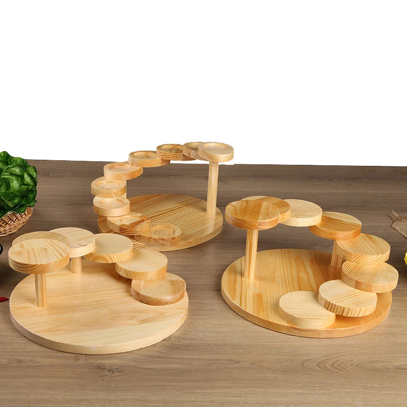 Pastoral Style Pine Kitchen Wood Tableware Bracket Storage Rack, Rotating Ladder for Spice Jar Rack, Gourmet Dim Sum and Sushi