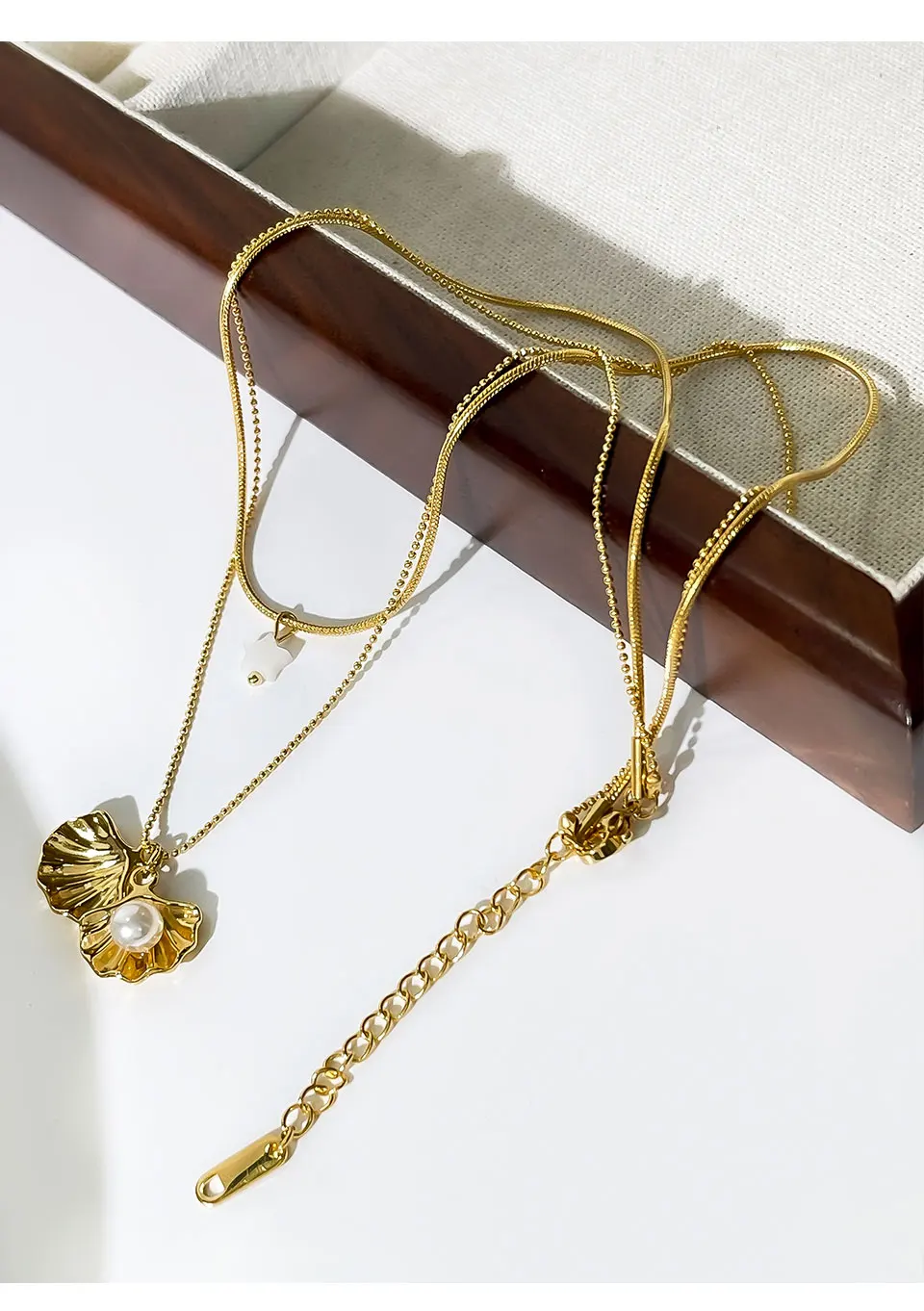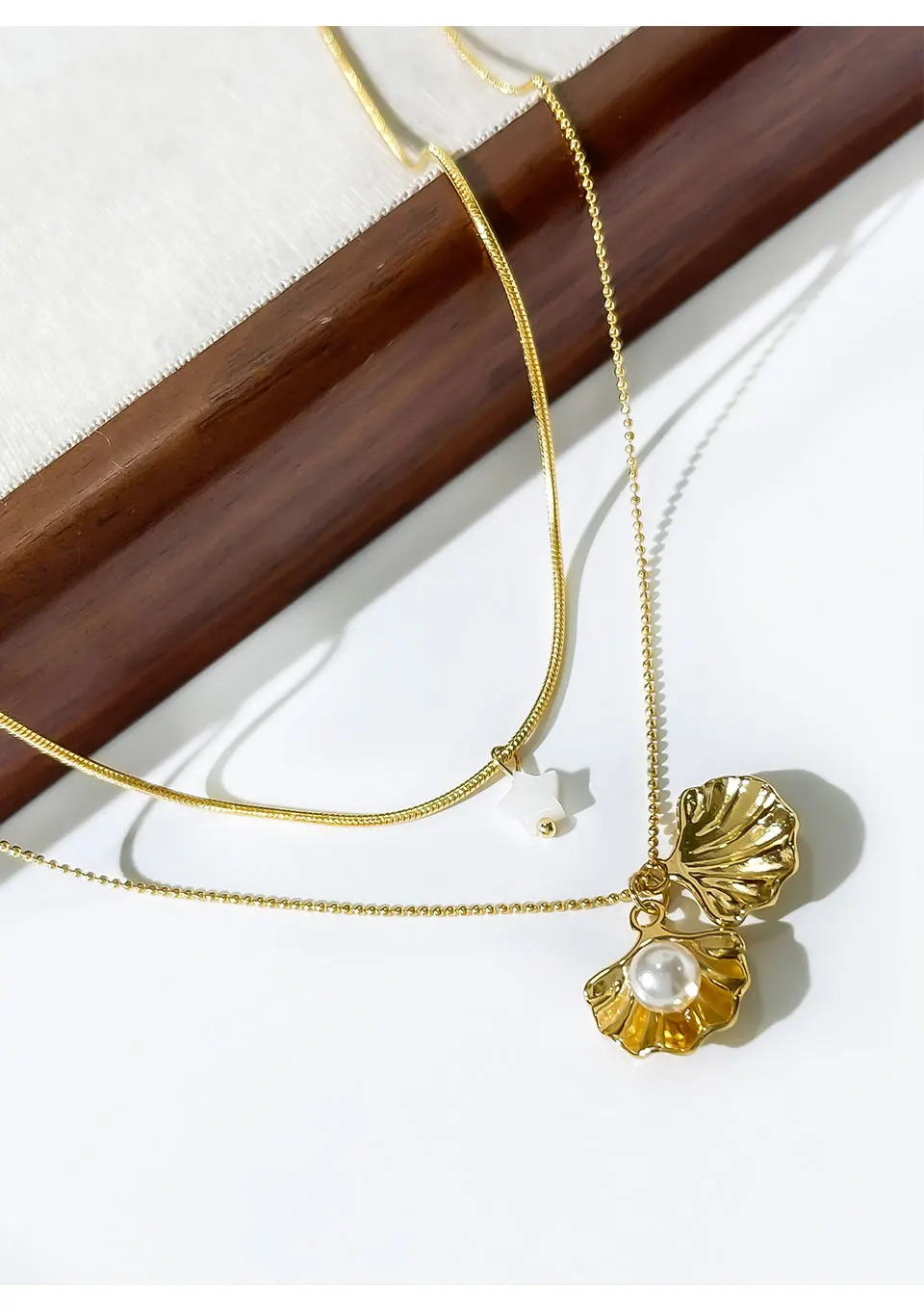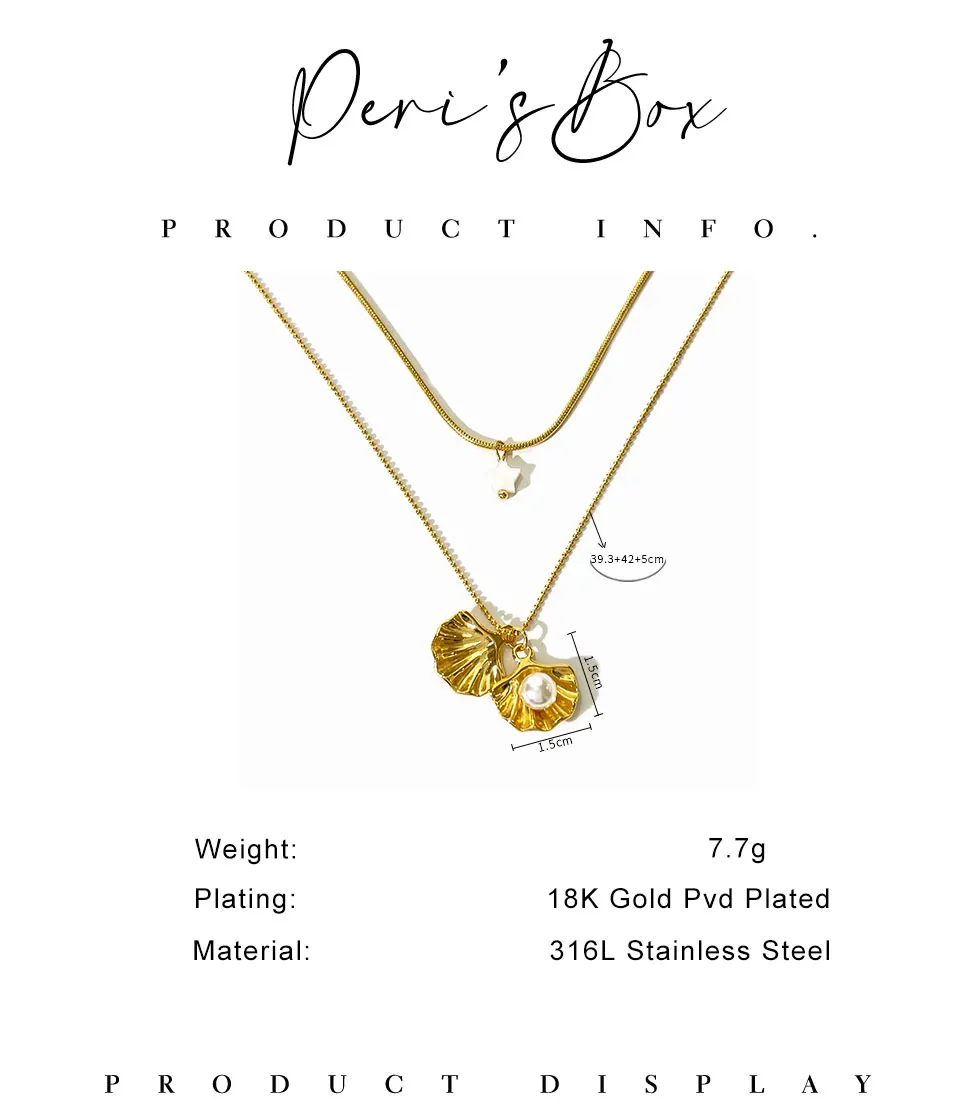 Peri’sbox New 18K Gold Plated Imitation Pearl Shell Pendant Women’s Necklace Sweet Sexy Double Layer Clavicle Chain Jewelry Gift