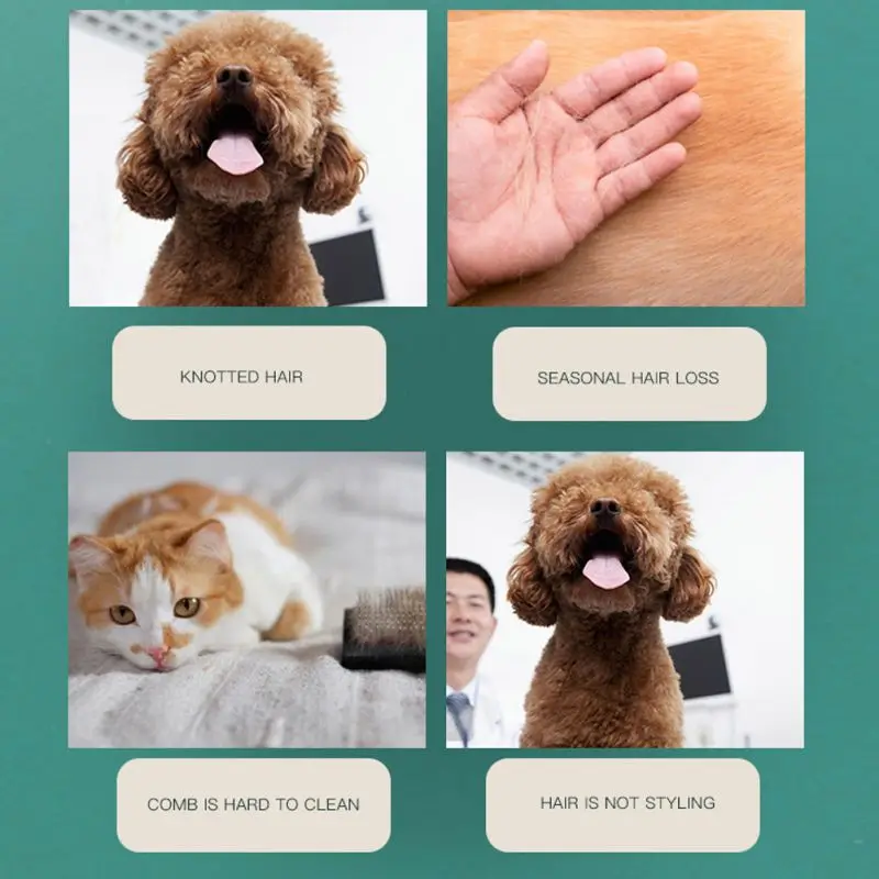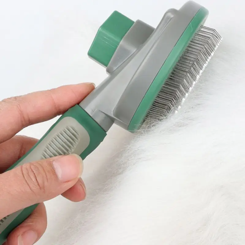 1. Press the button to fade the hair, the button can easily clean the hair on the comb and open the knot to remove the floating hair.