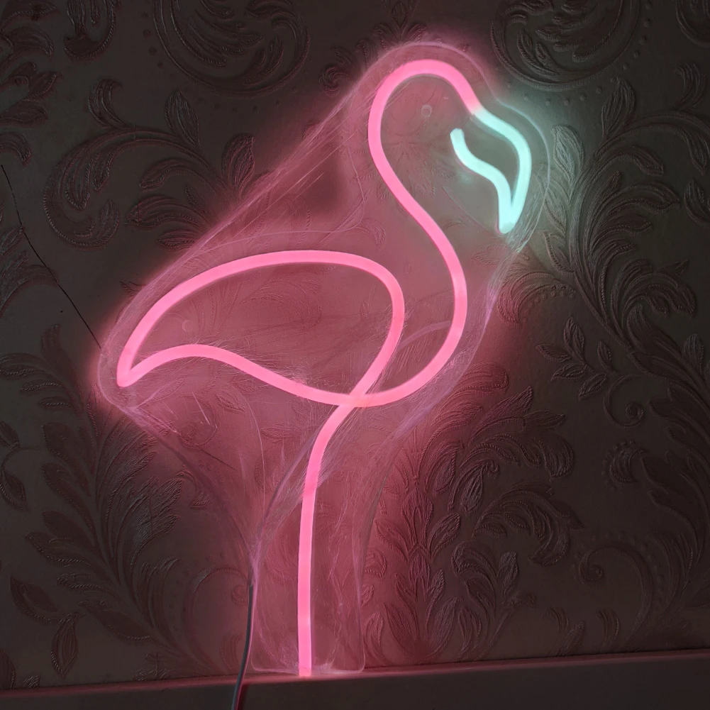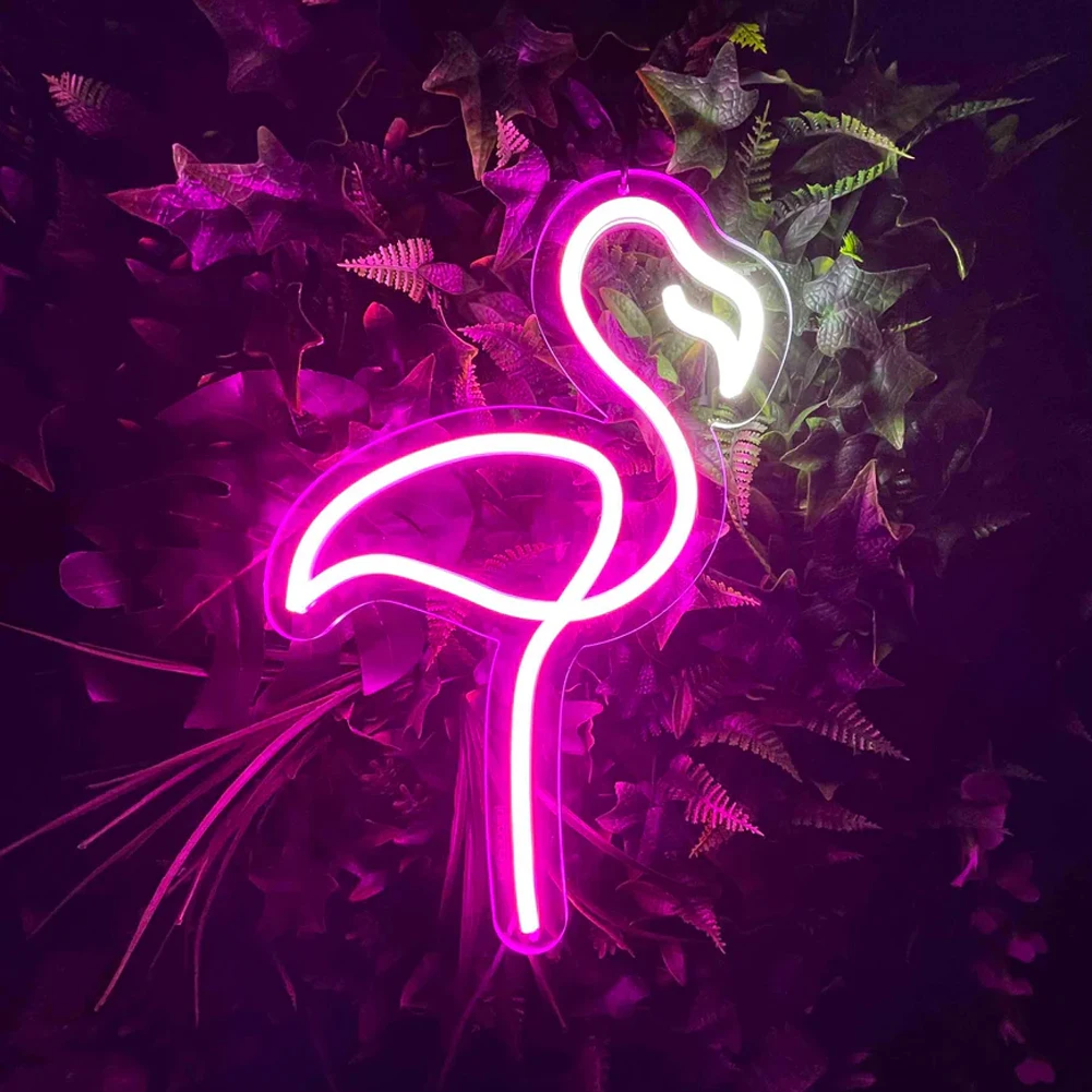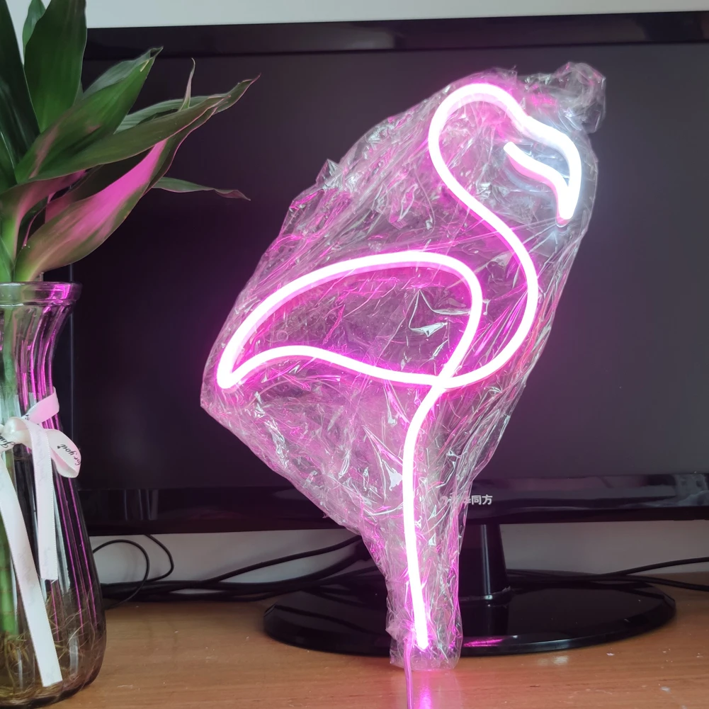 Pink Flamingo LED Neon Sign Light to Set on Table Party Home Wall Decorations Customizable Neon Strip Lamp