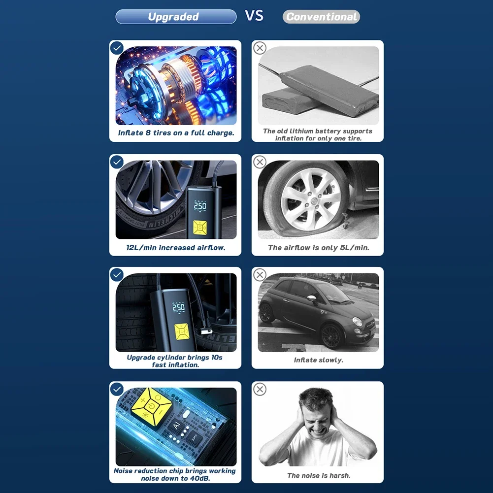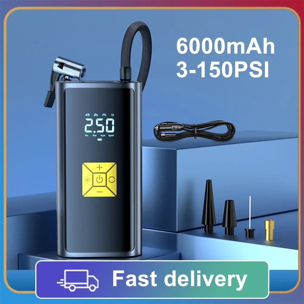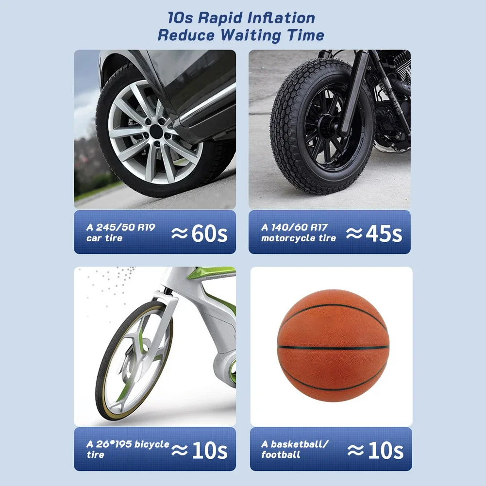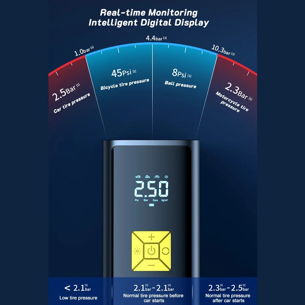 Portable Air Compressor for Car Tyres Precise Pressure Digital Display with LED Lights Power Bank Quick Air Pump Tyre Inflator