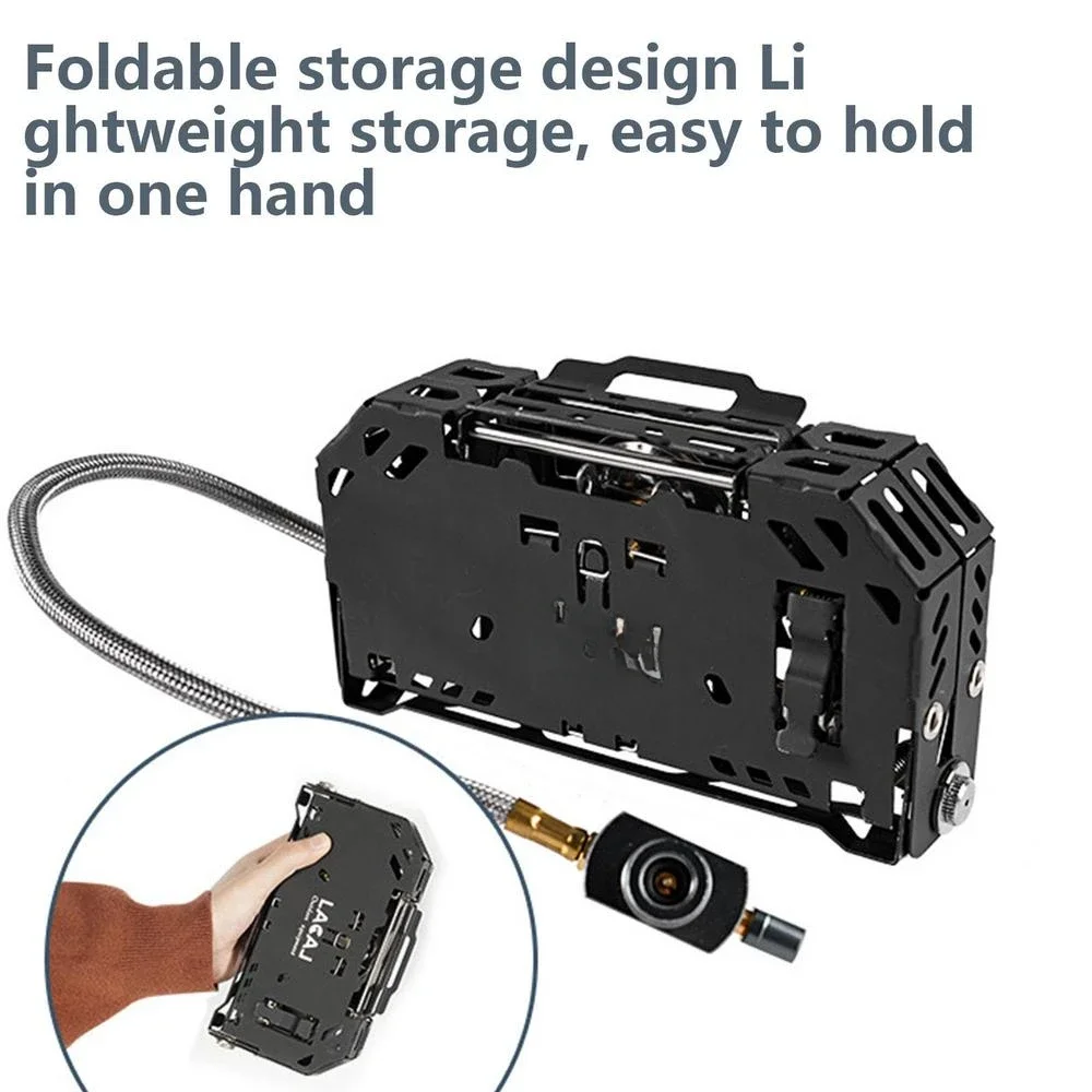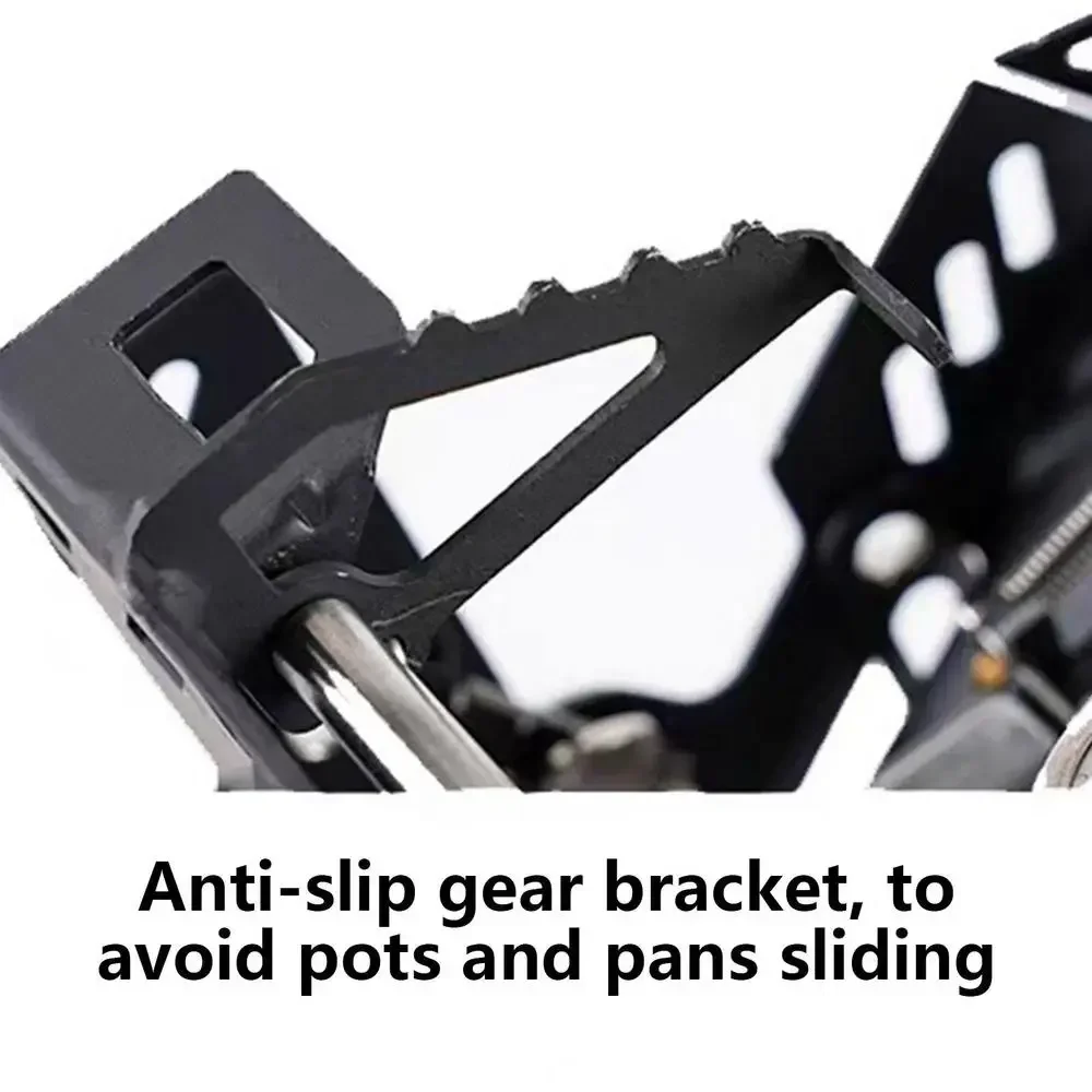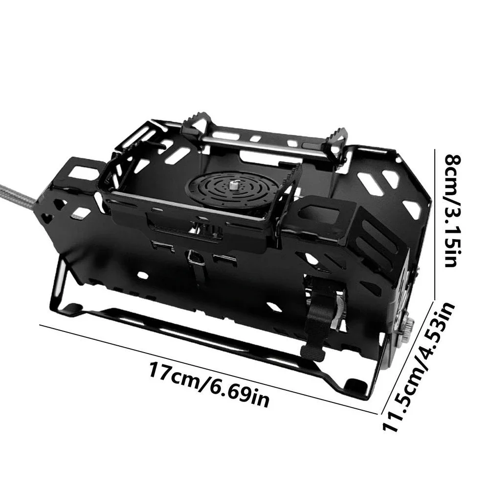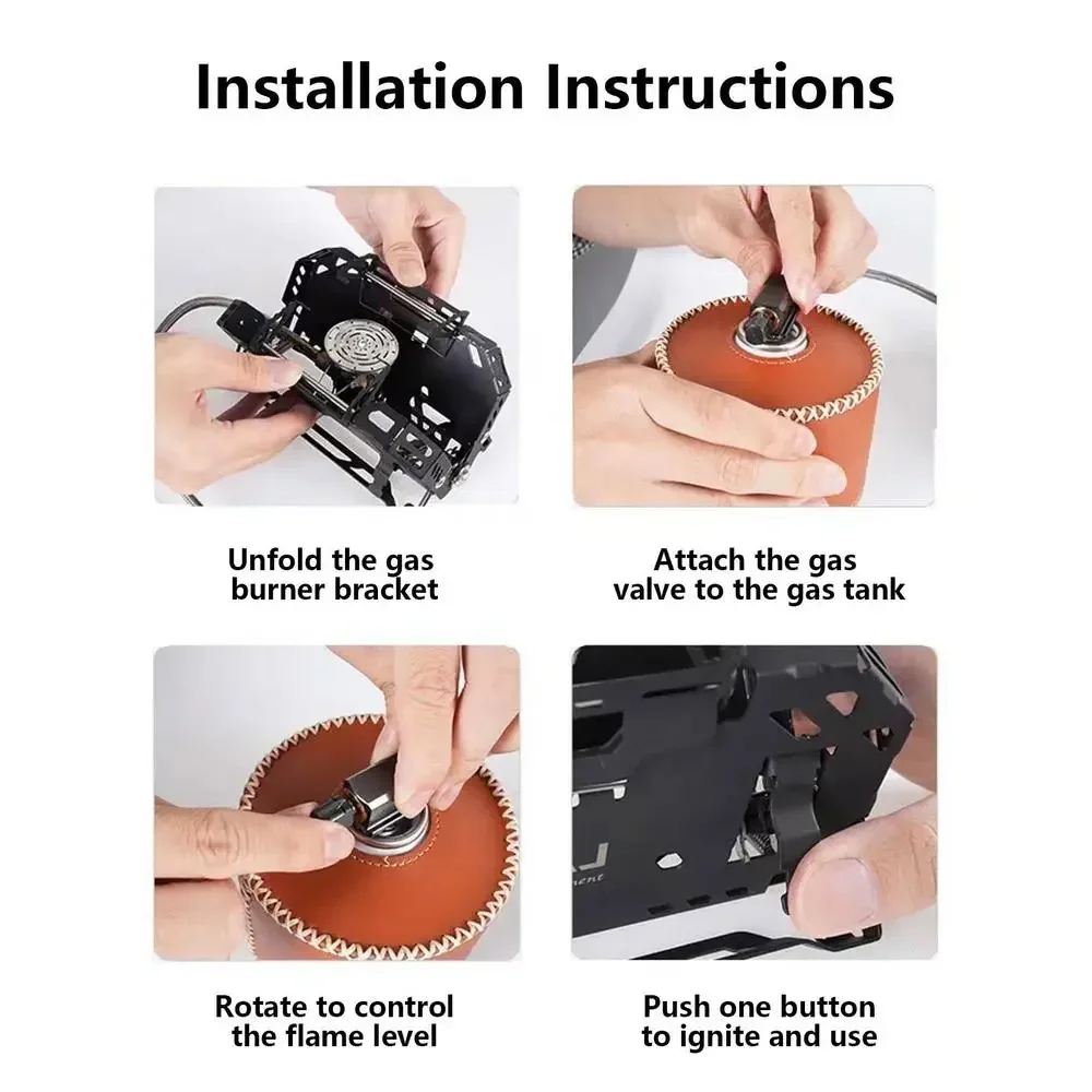 The perfect outdoor gear, our camping stove burner features a new windproof design that can withstand high temperatures. Its compact size makes it easy to carry on any camping trip. Rotate the switch to ignite the fire and enjoy a warm meal in nature.