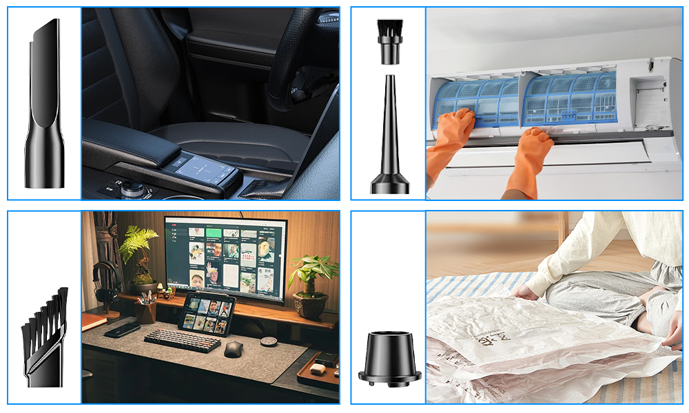 8. Applicable to: gaps in the car, sofa carpets, desks, computer keyboards, bookshelves, hair on the bed, drawers, etc. can be used in various scenes that cannot be cleaned