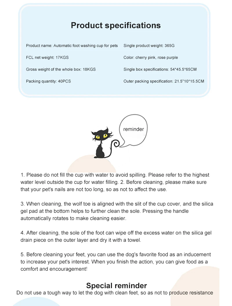 Portable Pet Foot Washer Cup Outdoor Travel Automic Puppy Kitten Paw Cleaner Cup Dog Silicone Foot Wash Tool Pet Supplies