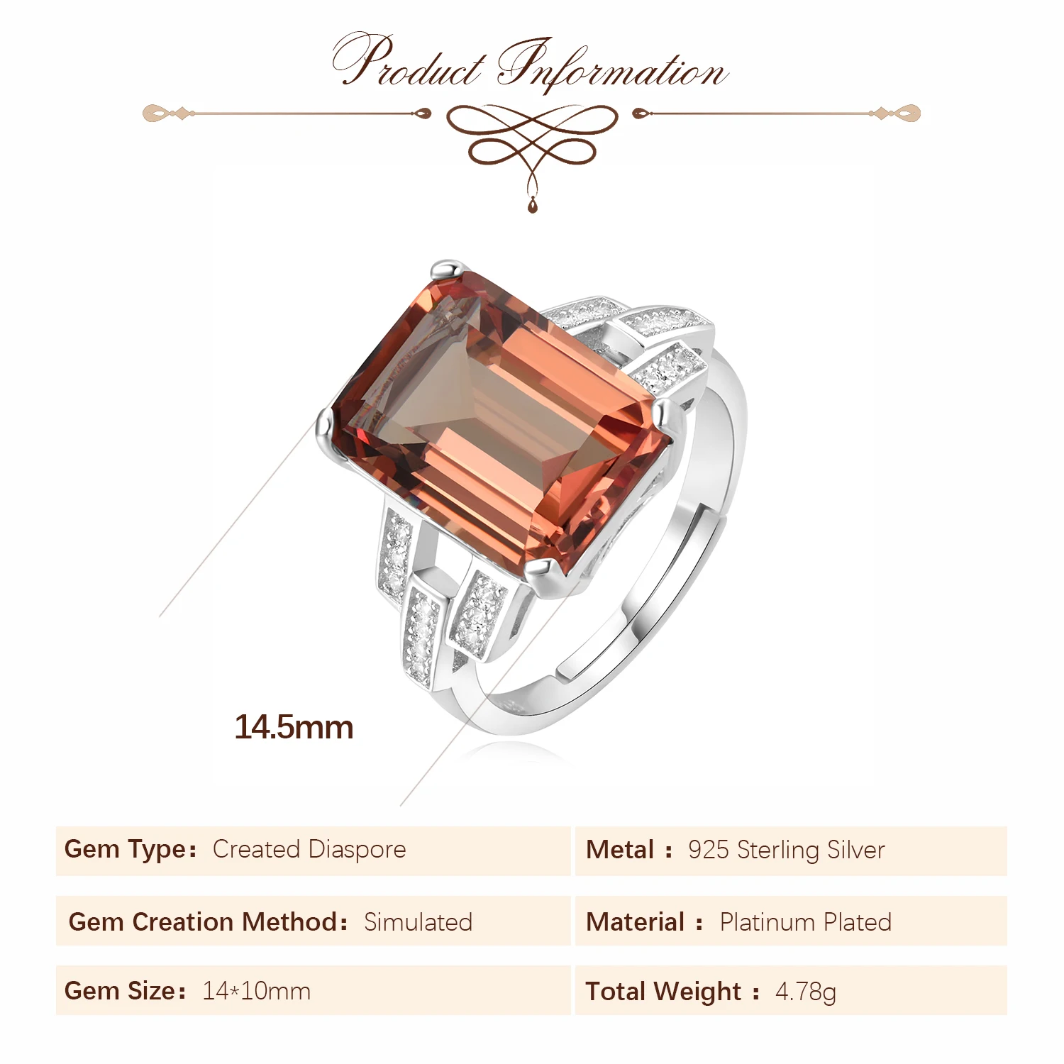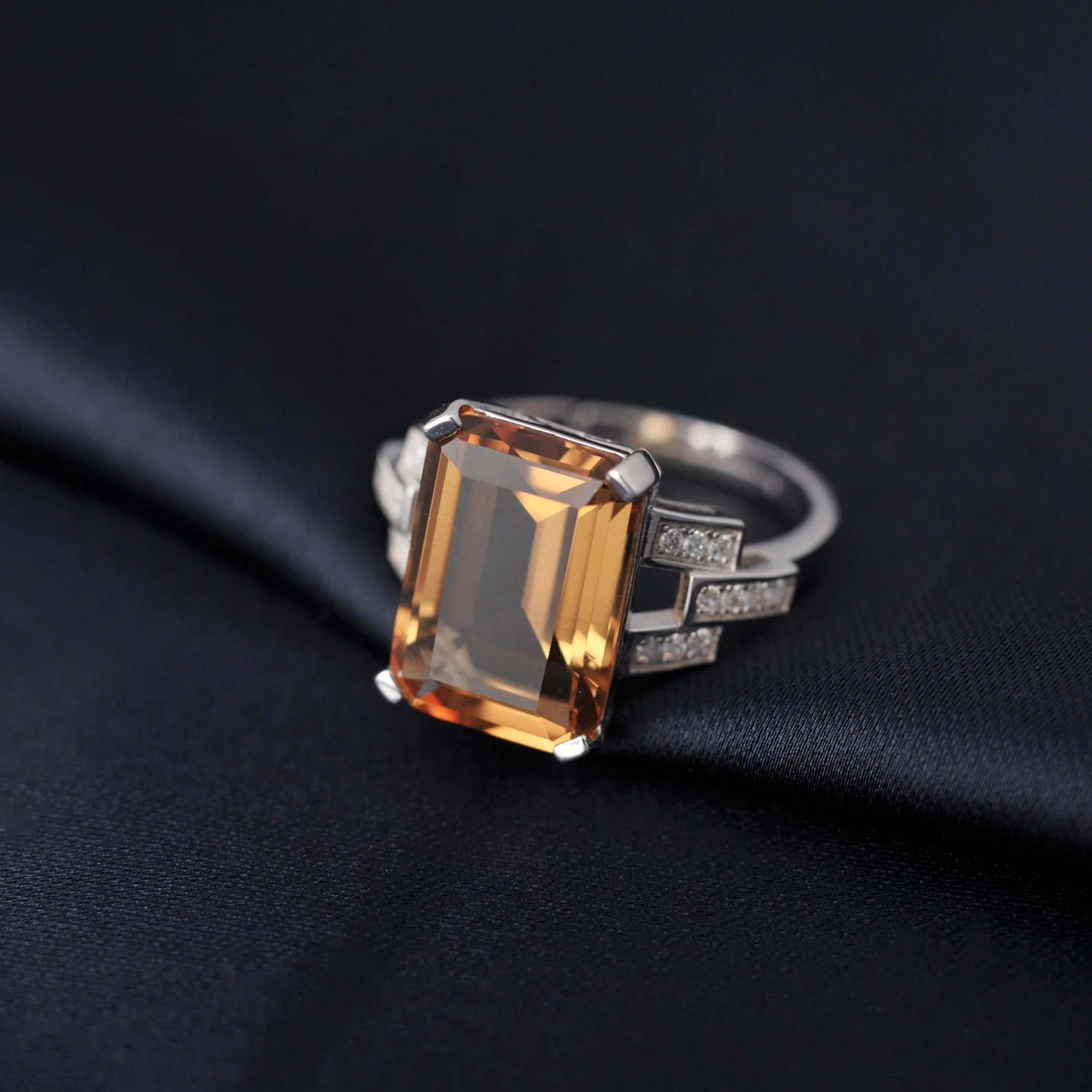 The ring features an emerald cut design, adding a touch of elegance and sophistication to any outfit.