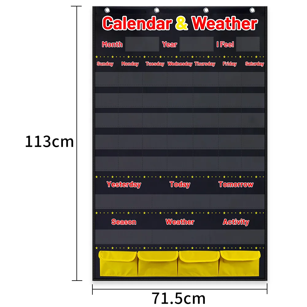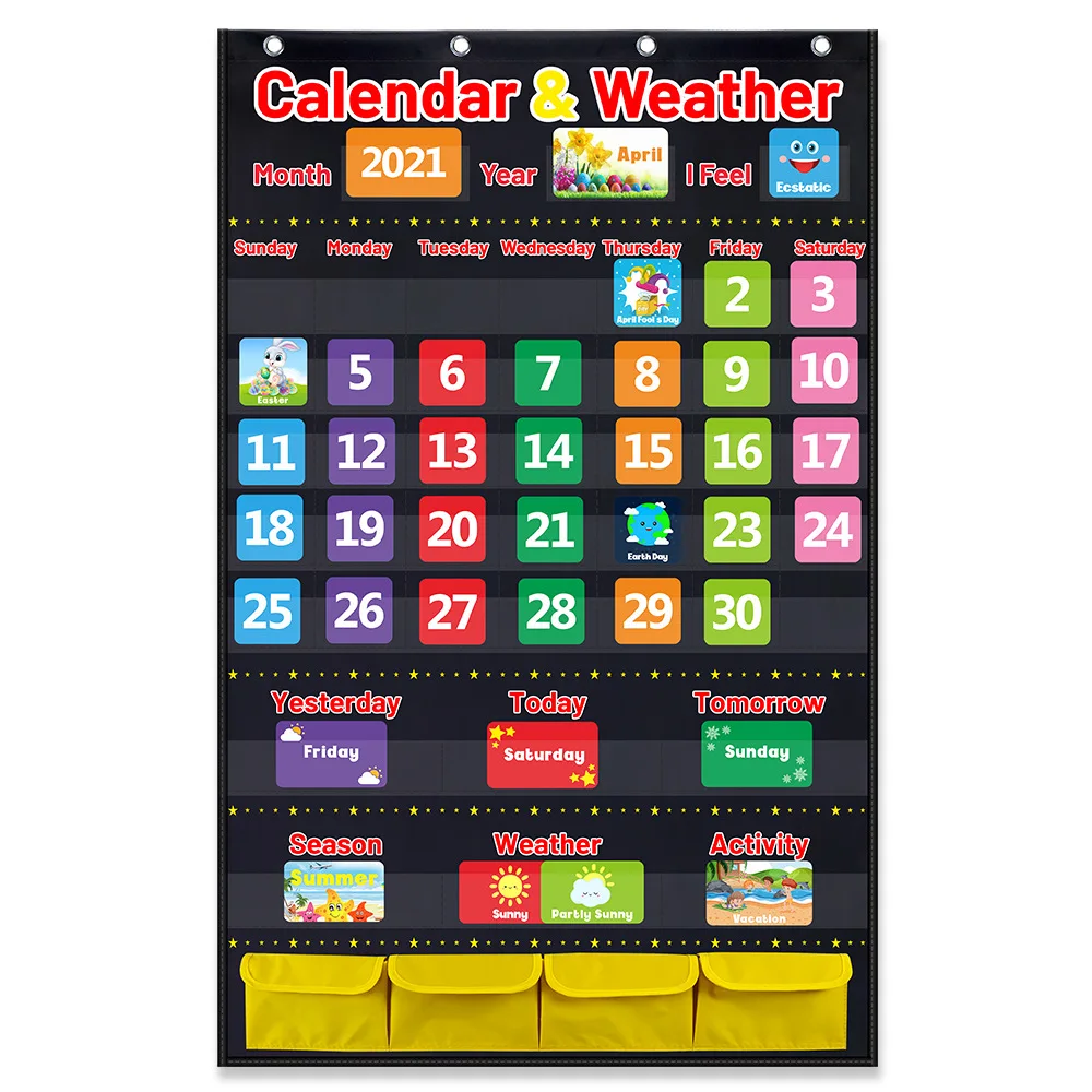 Preschool calendar and weather pocket chart set with 114 cards for kindergarten children teaching school supplies for kindergart