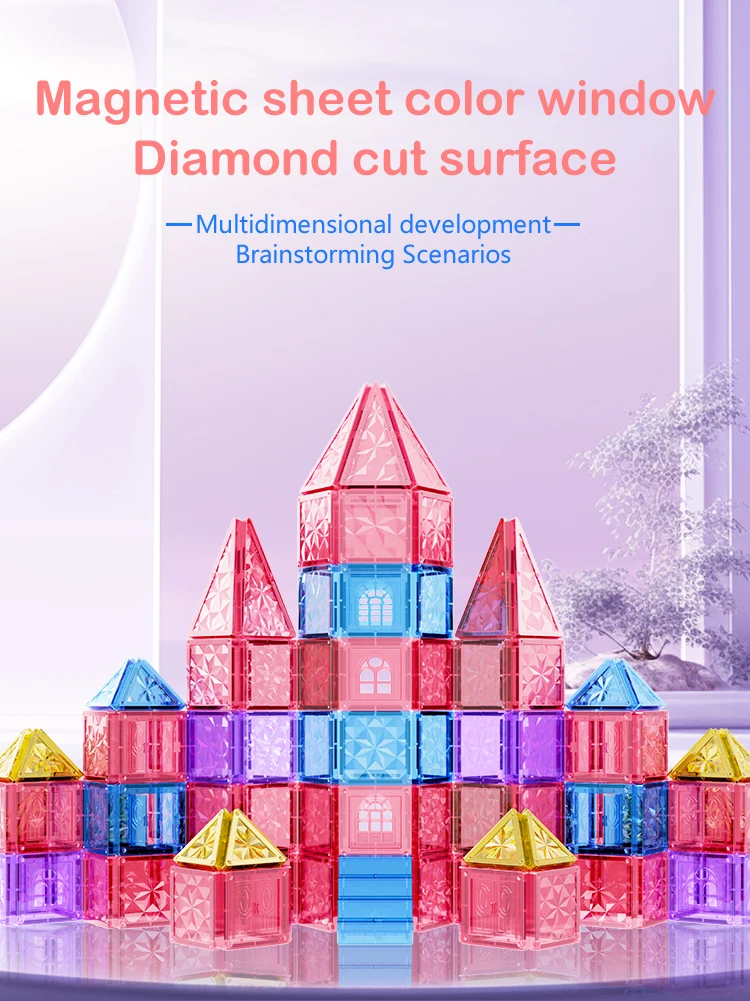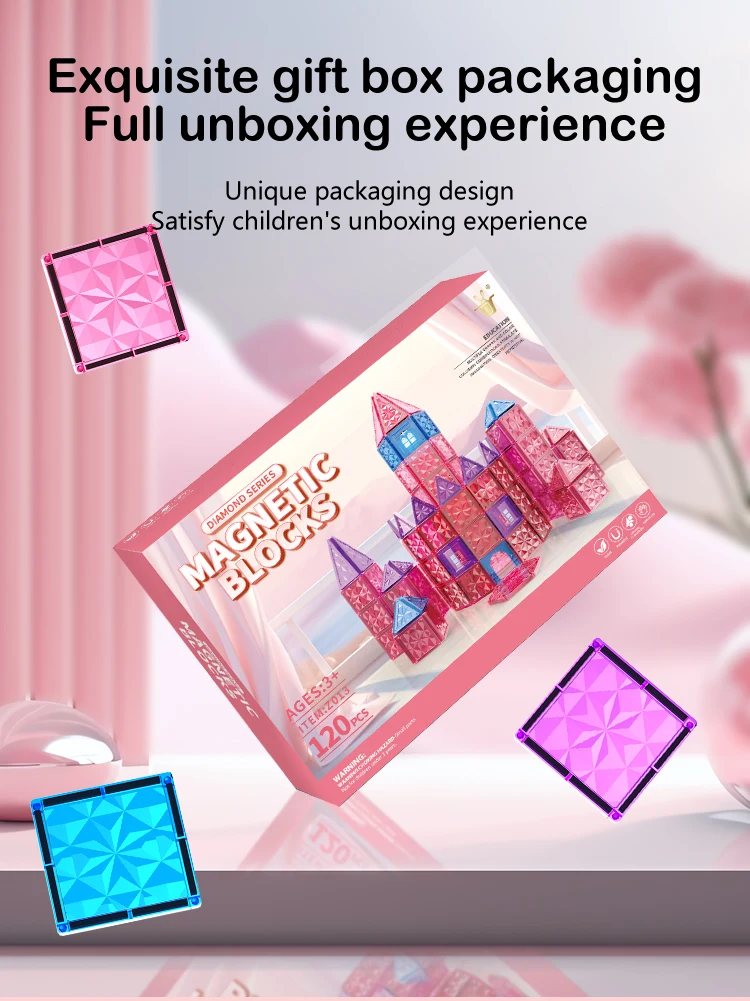 Princess Magnetic Tile Castle 3D Building Block Set – Sensory STEM Educational Building Toddler Kids Toys – Pink Magnetic Buildi