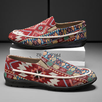 Ethnic Style Men’s Printed Loafers Designer Casual Canvas Shoes Men Flats Sneakers Breathable Slip-On Footwear Male Espadrilles