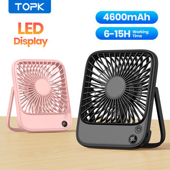 TOPK Desk Table Fan Rechargeable 2000mAh/4500mAh Battery Operated Desktop Fan Silent Thin Personal Fan with Power & Speed Displa