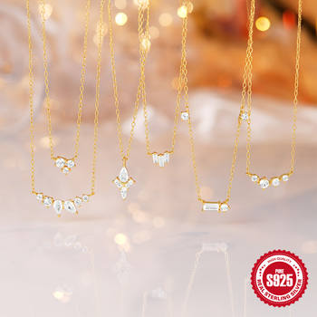 Aide 925 Silver Simple Layering Necklace For Women 18K Gold Plated Zircon Delicate Necklace ins Jewelry Wedding Party Gifts