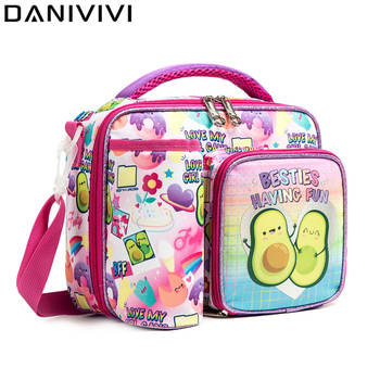 Lunch Bags Cute Food Bags for Kids Girls Large Capacity Bolsas De Almuerzo Lunch Box with Bottle Pocket Shoulder Lunch Bags 2022