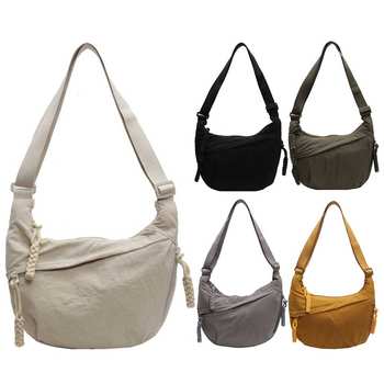 Women Fashion Shoulder Bag Multi-pockets Half Moon Bag Large Capacity Daily Messenger Bag Adjustable Strap Outdoor Travel Bag
