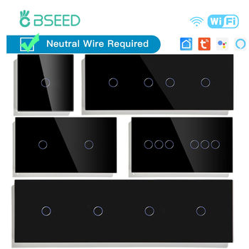 BSEED WIFI Touch Switches Series Smart Light Switches LED Blue Backlight Glass Sensor Screen Tuya APP Wall Switches EU Standard