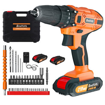 EMDTOOL Cordless Drill Driver 21V Battery Drill Set Electric Screwdriver Set, 25+1 Torque Setting, 2 Speed, LED Light for Home