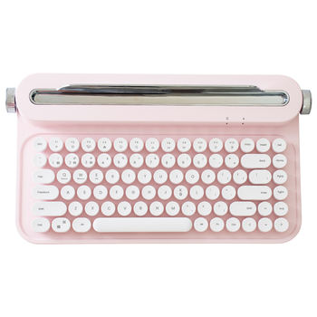 YUNZII ACTTO B305 Baby Pink Wireless Retro Typewriter Bluetooth Aesthetic Keyboard with Integrated Stand for Multi-Device