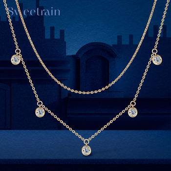 Sweetrain 4mm Moissanite Necklace for Women 925 Silver Double Layered Necklace Sets Plated 14K Gold Chaoker Fashion Jewelry Gift