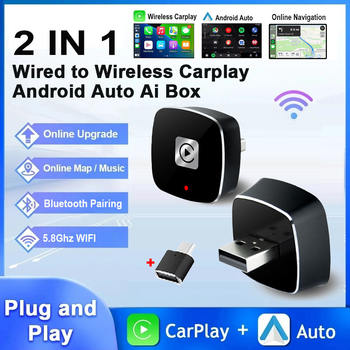 Wired To Wireless Carplay Adapter 2 In 1 Smart Box Plug and Play Auto Connect Wireless Android Auto for Mazda Audi Kia Ford Audi