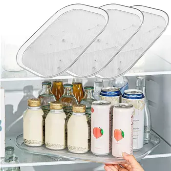 Turntable Organizer For Refrigerator 360 Rotatable Rectangle Storage Rack Clear Turntable Rack For Kitchen Cabinet Table Pantry