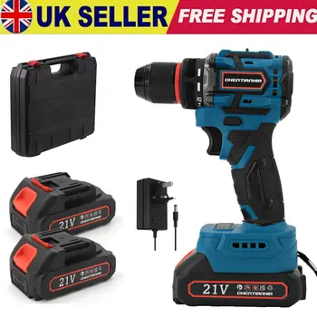 Heavy Duty 21V Brushless Cordless Drill Driver Impact Hammer Box 2 Batteries