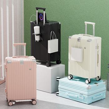 20 Inch Travel Suitcase Rolling Luggage Trolley Case Universal Wheel Carry-on Luggage with Cup holder Boarding Case