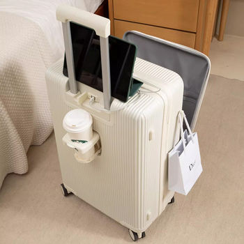 KLQDZMS High Quality Luggage PC Boarding Box 20″24″26 Inch Trolley Case USB Charging Front Opening Handheld Travel Suitcase