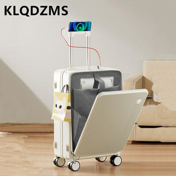 KLQDZMS New 20″24″26 Inch Laptop Suitcase Front Opening Boarding Box Women’s USB Charging Trolley Case Multifunctional Luggage