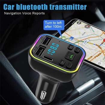 Car Bluetooth 5.0 FM Transmitter PD Type-C Dual USB 3.1A Fast Charger Wireless Handsfree Audio Receiver Car MP3 Player Modulator