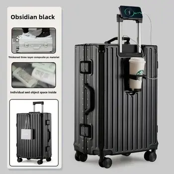 2025 New Multifunction Suitcase with USB Charging Aluminum Frame +PC Suitcase Trip Cabin Male and Female Carrier 28/30-inch