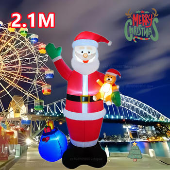 2.1M Christmas Inflatable knapsack Santa Claus holding teddy bear Built-in LED Light Outdoor Holiday Party Fun Decoration Props