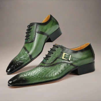Mens Green Oxford Dress Shoes men dress shoe vestidos Side Buckle Leather Wingtip Lace Up office business wedding Husband gift
