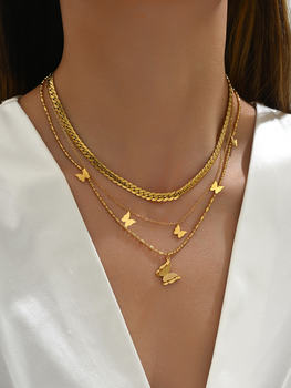 1PC 18k gold-plated titanium steel necklace with three layers of butterfly decoration fashion popular jewelry gift party