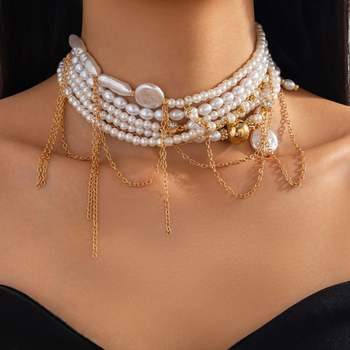KunJoe New Gothic Multi Layer Imitation Pearl Choker Necklace for Women Vintage Gold Color Tassel Chain Necklace Party Jewelry