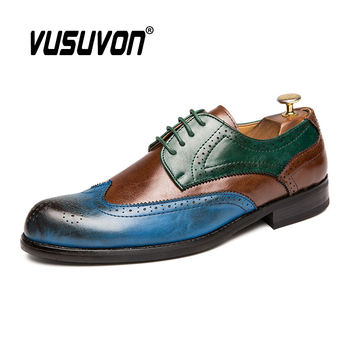 Big Size 38-47 British Men Oxfords Leather Shoes Green Blue Brogue Shoes Handmade Formal Dress Loafers Mixed Color Fashion Flats