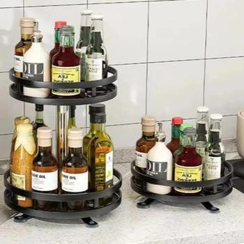 Kitchen Spice Storage Shelf Round Rotating Adjustable Shelves Oil Vinegar Dispenser Culinary Bottle Holder Kitchen Organizer