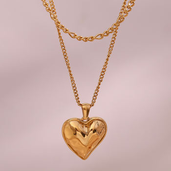 Holiday Vocation Mothers Day Gift Gold Plated Casting Heart Pendant Double Layers Necklace Waterproof Stainless Steel Jewelry