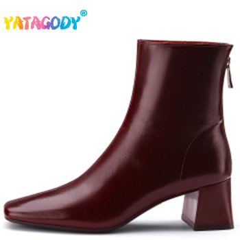 YATAGODY Size 35-40 Women Ankle Boots Classic Square Toe High Heels Shoes Woman Winter 2023 Zipper Casual Chunky Short Boots