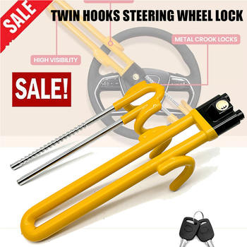 Twin Hooks Steering Wheel Lock Anti-Theft Car Security Device Adjustable Length Clamp Double Hook Tools with 2 Keys