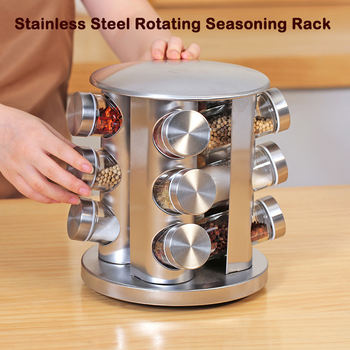 Stainless Steel Rotating Seasoning Rack Kitchen Supplie Seasoning Jar Set Herb And Spice Tools Glass Spice Jar Condiments Shelf