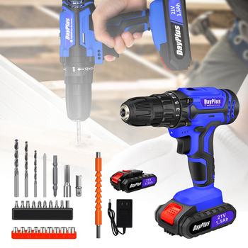 Cordless Drill Driver 21V Electric Screwdriver,Cordless Combi Drill Kit w/25+1 Torque,45 N.m,2 Speed,LED Light,26 Accessories