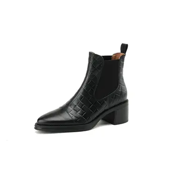 2024 Autumn Boots Women Genuine Leather Shoes for Women Pointed Toe Ankle Boots Chunky Heel Shoes Western Boots Platform Shoes